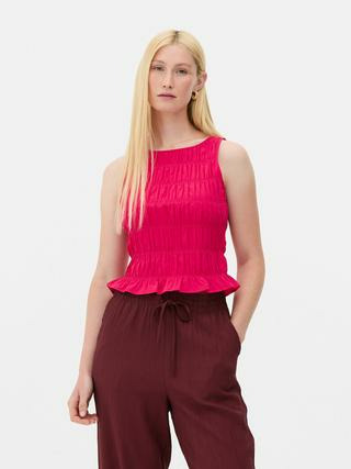 Haut sans manches ajusté avec texture froncée, ourlet à volants pour une finition féminine. Disponible dans la gamme Chemises et blouses de la marque Primark.