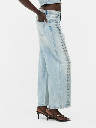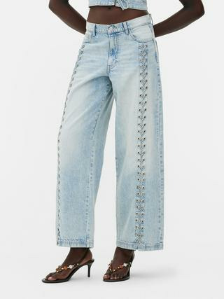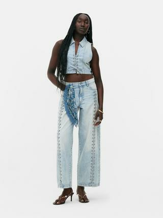 Adoptez une silhouette moderne avec le jean Rita signé Primark, où la taille mi-haute rencontre un jeu de lacets audacieux sur le devant. Ce détail unique transforme un basique en pièce phare de votre garde-robe.