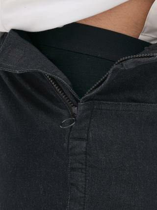 Fabriqué en tissu résistant, ce jean présente une taille mi-haute avec des tirettes ajustables à l’intérieur, des poches spacieuses et des ourlets zippés pour un style modulable et fonctionnel.