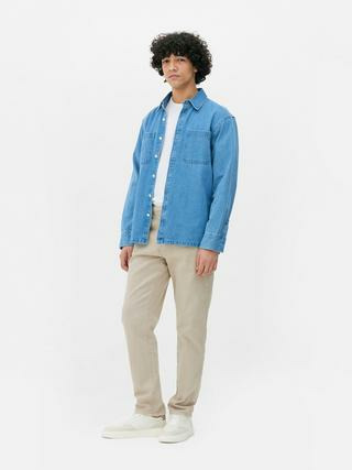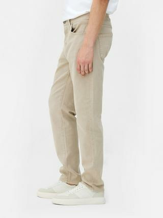 Jean stretch coupe droite avec poches avant et arrière, braguette boutonnée. Taille mi-haute pour un maintien optimal. Marque Primark.
