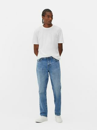 Jean en denim avec coupe droite et taille mi-haute. Braguette dissimulée pour une esthétique épurée. Cinq poches fonctionnelles. Marque Primark.