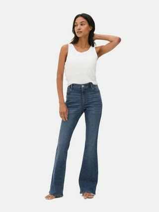 Jean évasé Primark avec passants de ceinture, braguette boutonnée et poches avant et arrière. Disponible en plusieurs tailles pour un ajustement précis.