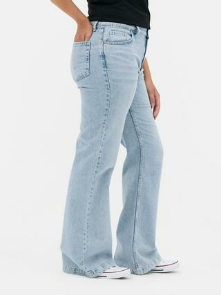 Jean évasé avec surpiqûres classiques, cinq poches fonctionnelles, taille mi-haute pour un maintien optimal. Matière denim robuste assurant durabilité et confort au quotidien.