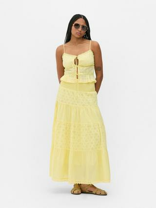 Laissez-vous séduire par l’élégance naturelle de cette jupe longue brodée, parfaite pour sublimer chaque mouvement. Son design raffiné et ses détails délicats en font un incontournable de votre garde-robe estivale.