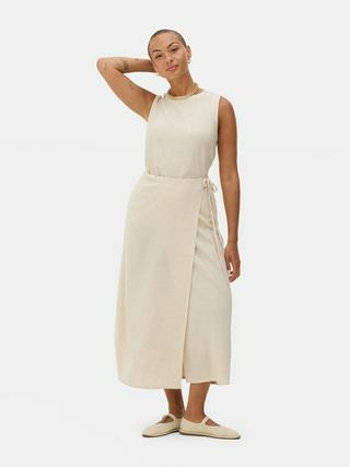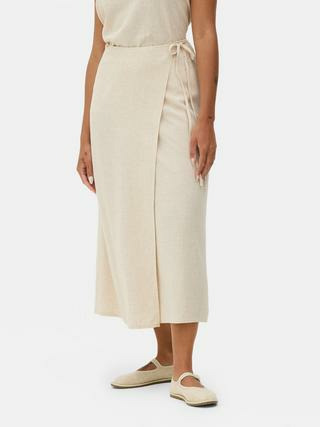 Jupe portefeuille mi-longue en tissu texturé, à nouer sur le côté. Coupe ajustable pour un maintien personnalisé. Marque : Primark.