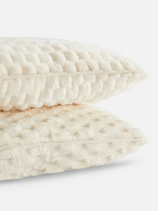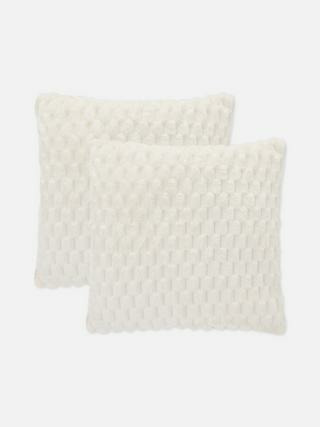 Lot de 2 coussins en tissu d’ameublement, finition effet nid d’abeille, marque Primark. Dimensions standards adaptées à tous les intérieurs. Entretien simple pour préserver la texture et la couleur.
