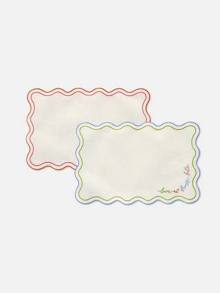 Apportez une touche d’élégance discrète à votre table avec ce lot de deux sets de table à bords festonnés. Un détail raffiné qui sublime chaque repas, du quotidien aux occasions spéciales.