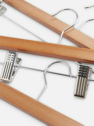Lot de 3 cintres pour pantalon en métal et bois, dimensions standards adaptées à tous types de pantalons, finition naturelle pour un look sobre et élégant.