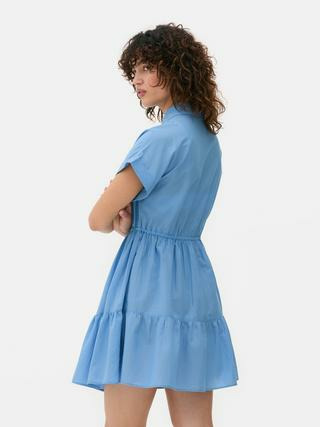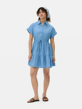 Conçue pour sublimer la silhouette, cette robe chemise Primark se distingue par sa jupe à superpositions qui apporte du volume et du mouvement. Les manches courtes et les boutons sur le devant renforcent son allure chic et décontractée, idéale pour passer de la journée au soir avec aisance.