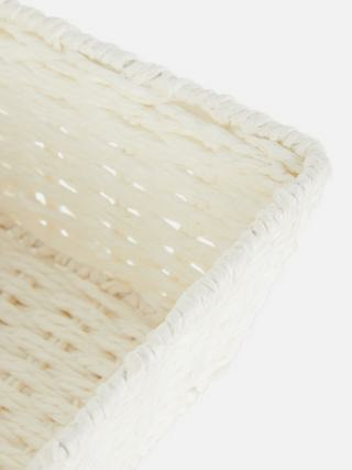 Organisez votre espace avec élégance grâce au panier carré en corde Primark. Un accessoire de rangement qui allie robustesse et style naturel pour un bureau impeccable.