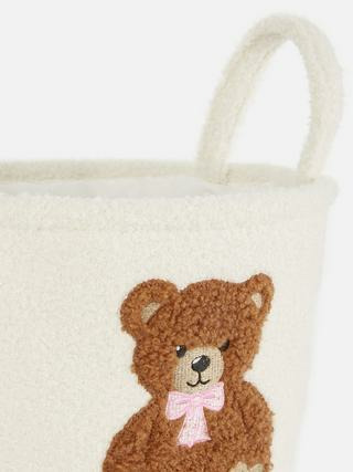 Dimensions et matériaux ne sont pas spécifiés, mais la présence de poignées assure une manipulation aisée. Le motif ours tufté garantit une texture agréable au toucher et une durabilité adaptée à un usage quotidien.