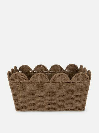 Conçu dans un tressage classique, ce panier séduit par son design délicat aux bords festonnés, qui apporte une note décorative subtile et raffinée. Sa texture douce et naturelle s’intègre parfaitement à tous les styles d’intérieur, du plus contemporain au plus bohème. Idéal pour organiser vos accessoires, magazines ou textiles, il transforme le rangement en un geste esthétique.