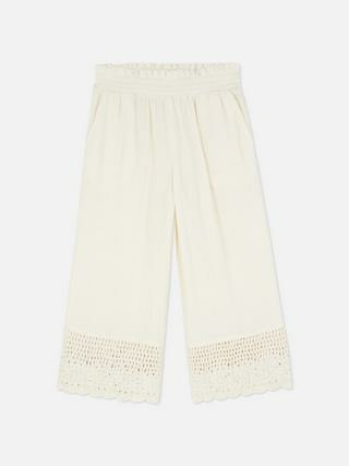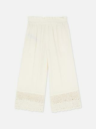 Confectionné en crochet, ce pantalon large dispose d’une taille élastiquée pour un maintien souple et adaptable. Il fait partie de la gamme vêtements fille de la marque Primark, reconnue pour ses pièces mode accessibles et de qualité.