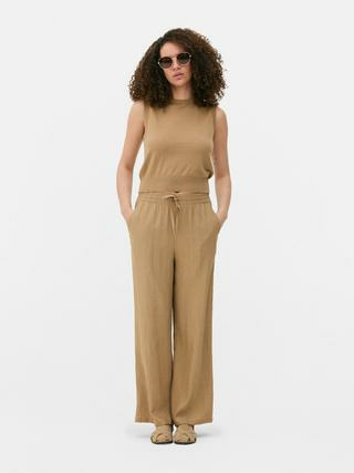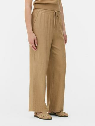 Ce pantalon large est doté d’un cordon de serrage à la taille pour un maintien optimal et de poches latérales pour un rangement discret. Sa matière froissée assure légèreté et texture unique, facile à entretenir.