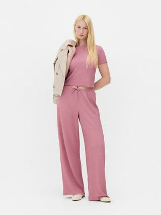 Confectionné en tissu froissé, il présente une coupe large et un cordon de serrage à la taille pour un confort ajustable. Disponible dans la catégorie Pantalons et leggings, il est signé Primark, gage de qualité accessible.