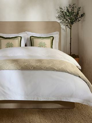 100% coton peigné, tissage 500 fils pour une douceur et une résistance accrues. Motif brodé délicat sur l’ensemble de la parure. Dimensions king size adaptées aux lits 240x220 cm. Lavable en machine à 40 degrés, repassage facile.