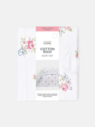 Offrez à votre chambre une touche d’élégance intemporelle avec cette parure de lit double au motif floral en point de croix. Un mariage subtil entre tradition et modernité pour un décor raffiné et apaisant.