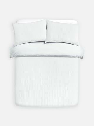Parure de lit double à texture gaufrée : quelles dimensions ? Elle convient aux lits doubles standards, généralement 220 x 240 cm pour la housse de couette.