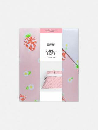 Conçue pour insuffler une ambiance joyeuse et naturelle, cette parure joue sur le contraste entre ses deux faces réversibles, offrant deux looks en un. Les motifs fruits apportent une touche vitaminée tandis que les pâquerettes évoquent douceur et légèreté, parfaits pour renouveler votre décoration sans effort. Son design signé Primark s’intègre aussi bien dans un intérieur moderne que bohème.