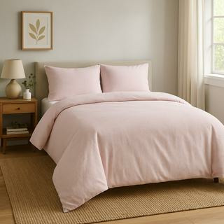 Fabriquée par Primark, cette parure comprend une housse de couette et deux taies d’oreiller adaptées à un lit king size. Le tissu en crêpe est composé de fibres sélectionnées pour leur douceur et leur tenue. Lavable en machine, elle conserve ses couleurs et sa texture lavage après lavage.