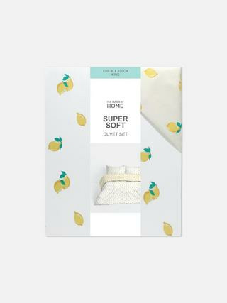 Conçue pour allier esthétique et praticité, cette parure de lit Primark se distingue par son motif délicat de petits citrons, qui apporte une note lumineuse et naturelle à votre décoration. Réversible, elle offre deux ambiances différentes, vous permettant de varier les plaisirs selon vos envies. Sa texture douce et confortable invite à des nuits paisibles et réparatrices.