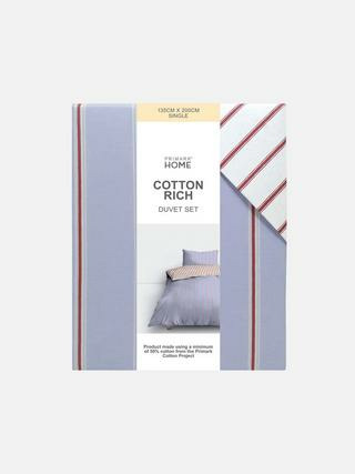 Conçue par Primark, cette housse de couette associe deux motifs rayés complémentaires, inspirés du style classique des campus. La taie d’oreiller assortie complète l’ensemble avec harmonie, pour un rendu soigné et contemporain. La réversibilité permet de changer facilement de style sans changer de linge, apportant fraîcheur et dynamisme à votre espace nuit.