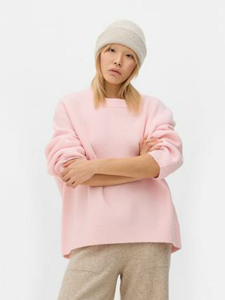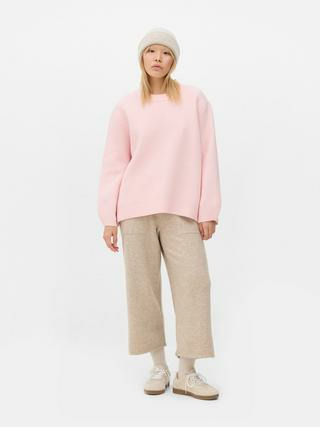 Pull à col ras-du-cou, coupe oversize, matière brossée douce et confortable. Disponible en plusieurs tailles. Marque : Primark. Catégorie : Pulls et gilets.