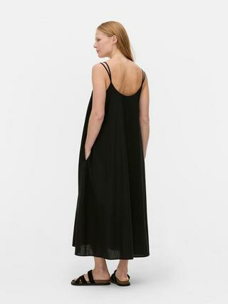 Vous apprécierez sa légèreté et son confort, parfaits pour les journées chaudes. Sa coupe longue allonge la silhouette, tandis que les fines bretelles mettent en valeur les épaules avec finesse. Un choix sûr pour une allure à la fois simple et sophistiquée.