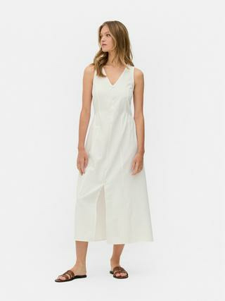 Fabriquée en crêpe texturé, elle présente une fente frontale et des liens à nouer au dos à la taille, assurant un ajustement personnalisé. Disponible sous la marque Primark, elle allie qualité et tendance à un prix accessible.