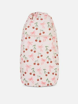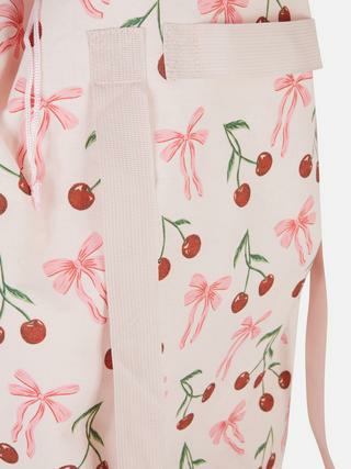 Optez pour un rangement pratique et tendance avec ce sac à linge style sac à dos au motif nœud et cerise. Alliez fonctionnalité et design pour organiser votre linge avec élégance.