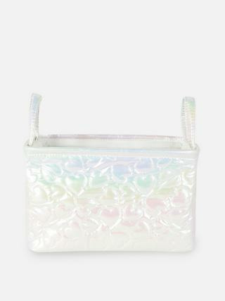 Organisez votre espace avec style grâce au sac de rangement matelassé holographique à cœurs. Son design unique apporte une touche moderne et tendance à votre intérieur.