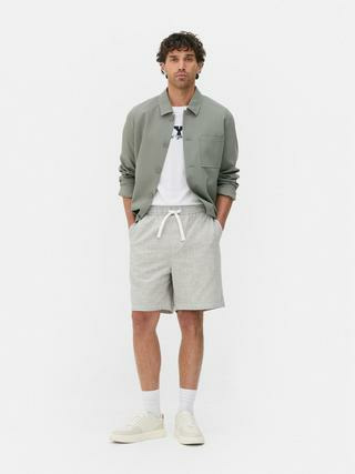 Ce short est doté d’un cordon de serrage à la taille et présente un motif hachuré distinctif. Il appartient à la gamme Primark et fait partie de la catégorie shorts.