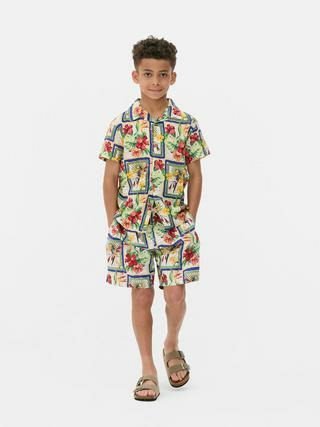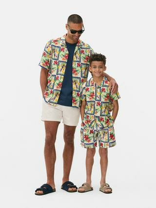Fabriqué par Primark, ce short de bain est conçu en tissu léger et résistant, avec une taille élastiquée munie d’un cordon de serrage. Son imprimé carte postale tropicale donne un look estival affirmé.