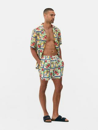 Plongez dans l’été avec ce short de bain tropical signé Primark, alliant style et confort pour vos journées ensoleillées. Son imprimé exotique vous transporte instantanément vers des plages paradisiaques.