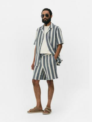 Adoptez un style estival et décontracté avec ce short rayé en crochet signé Primark. Son design graphique et sa texture légère apportent une touche d’originalité à vos tenues casual.