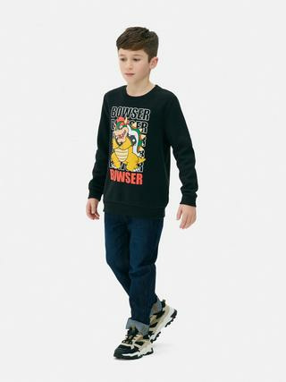 Ce sweat-shirt Primark met en scène Bowser dans un motif graphique audacieux sur le devant, apportant une touche dynamique à la tenue. Les finitions côtelées aux poignets et à la taille assurent un maintien parfait tout en offrant une silhouette soignée. Léger et facile à porter, il accompagne parfaitement les aventures des plus jeunes, que ce soit à l’école ou en sortie.