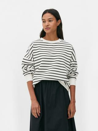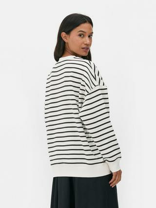 Ce sweat-shirt est fabriqué majoritairement en coton, avec des épaules tombantes qui renforcent l’effet oversize. Il appartient à la gamme sweat-shirts et sweats à capuche de la marque Primark, reconnue pour ses pièces accessibles et tendance.