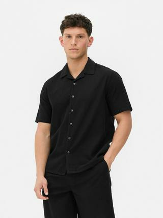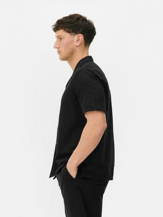 T-shirt en lin à manches courtes, col cranté, devant boutonné. Coupe ajustée. Disponible dans plusieurs tailles. Marque Primark.