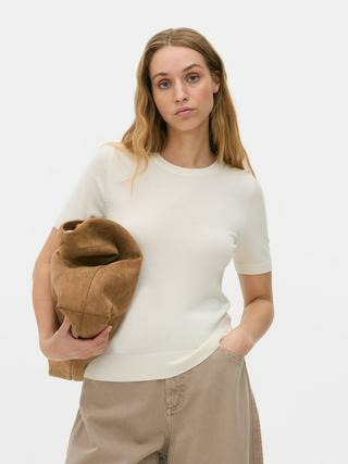 Ce T-shirt Primark allie simplicité et élégance grâce à son tissu compact qui épouse le corps sans serrer. Sa matière soigneusement sélectionnée garantit une tenue impeccable au fil des heures, idéale pour un look casual ou plus habillé selon vos envies. Facile à associer, il devient la base parfaite pour toutes vos tenues quotidiennes.