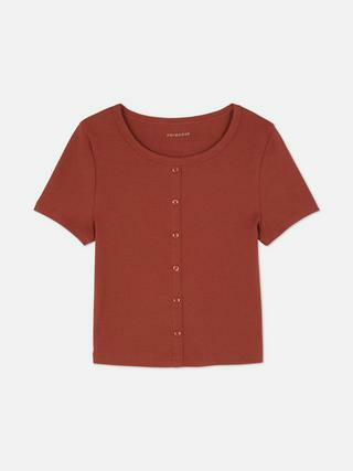 T-shirt manches courtes en tissu côtelé avec boutons sur le devant. Coupe ajustée. Matière douce et extensible pour un confort maximal. Disponible dans la section Vêtements fille.