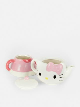 Service en céramique comprenant une théière et une tasse décorée Hello Kitty. Marque : Primark. Adapté à un usage domestique, facile à nettoyer.