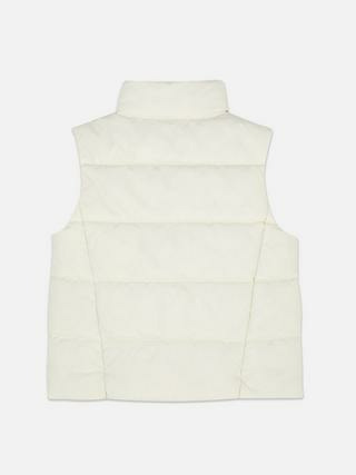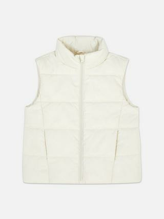 Col cheminée, fermeture zippée intégrale, poches fendues latérales. Coupe droite, sans manches, adaptée aux vêtements fille de la marque Primark.