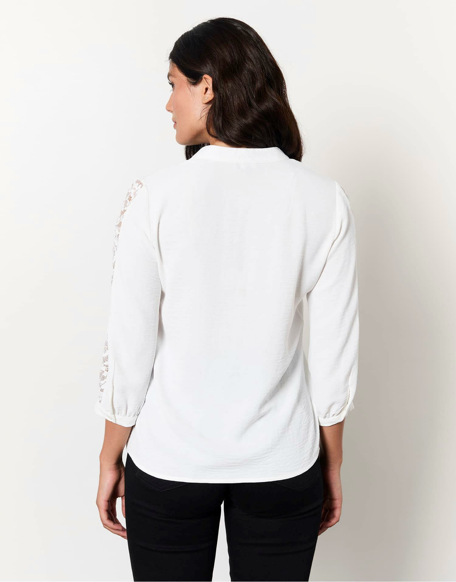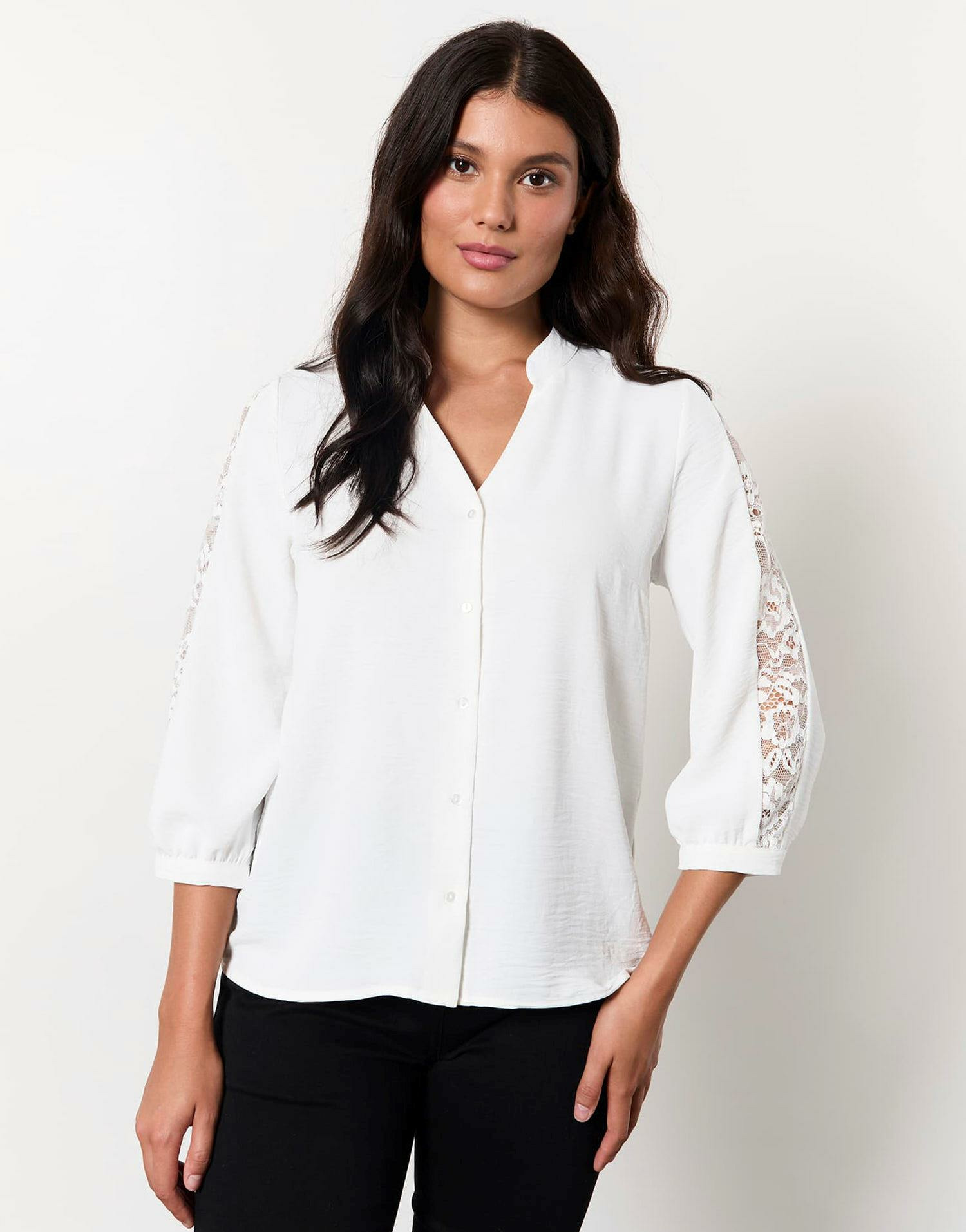 Élevez votre style avec cette blouse blanche aux manches trois-quarts, sublimée par un délicat détail de dentelle. Parfaite pour insuffler une touche d’élégance à vos tenues quotidiennes ou vos moments d’exception.