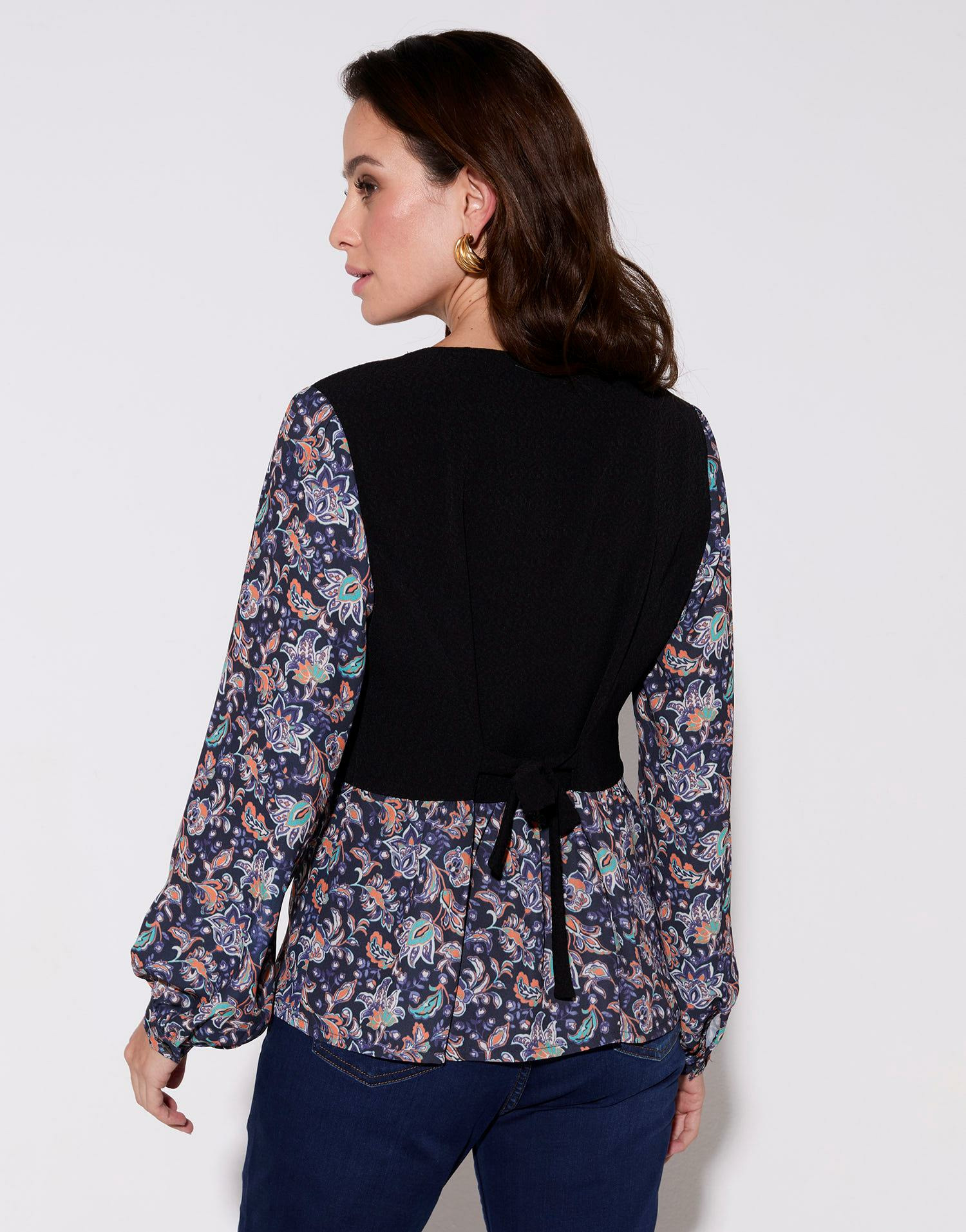 Succombez à l’élégance florale avec cette blouse manches longues imprimé à fleurs marine signée RIU Paris. Son design 2 en 1, combinant blouse et gilet intégré, offre une silhouette raffinée et moderne en un seul geste.