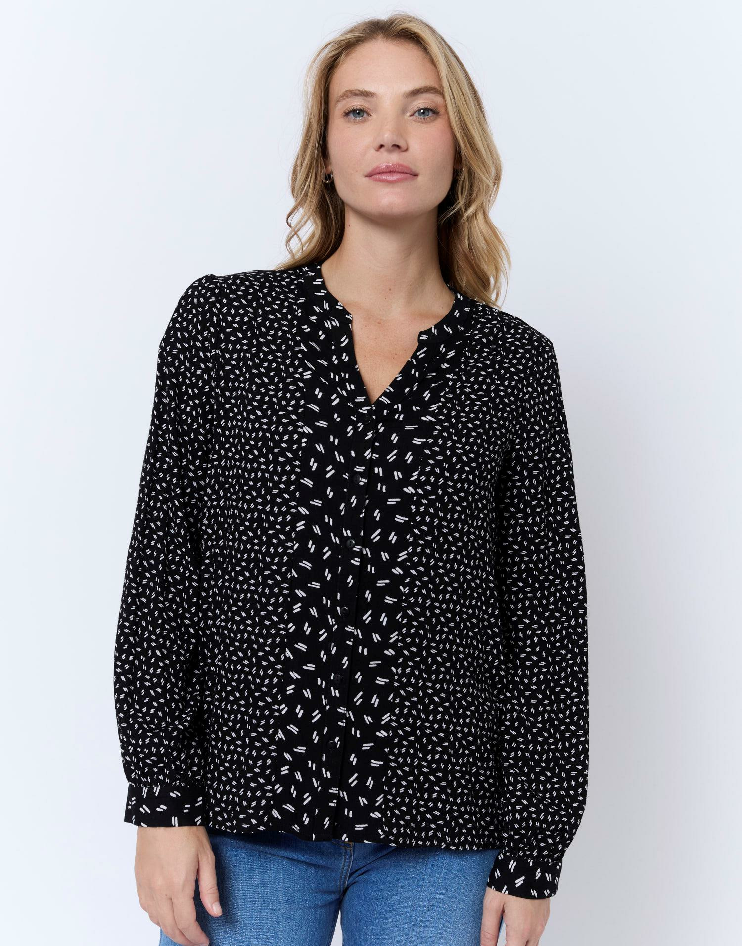 Apportez une touche d’élégance subtile à votre garde-robe avec cette blouse manches longues imprimée noire signée RIU Paris. Sa silhouette fluide et son imprimé délicat font de cette pièce un incontournable du style féminin contemporain.
