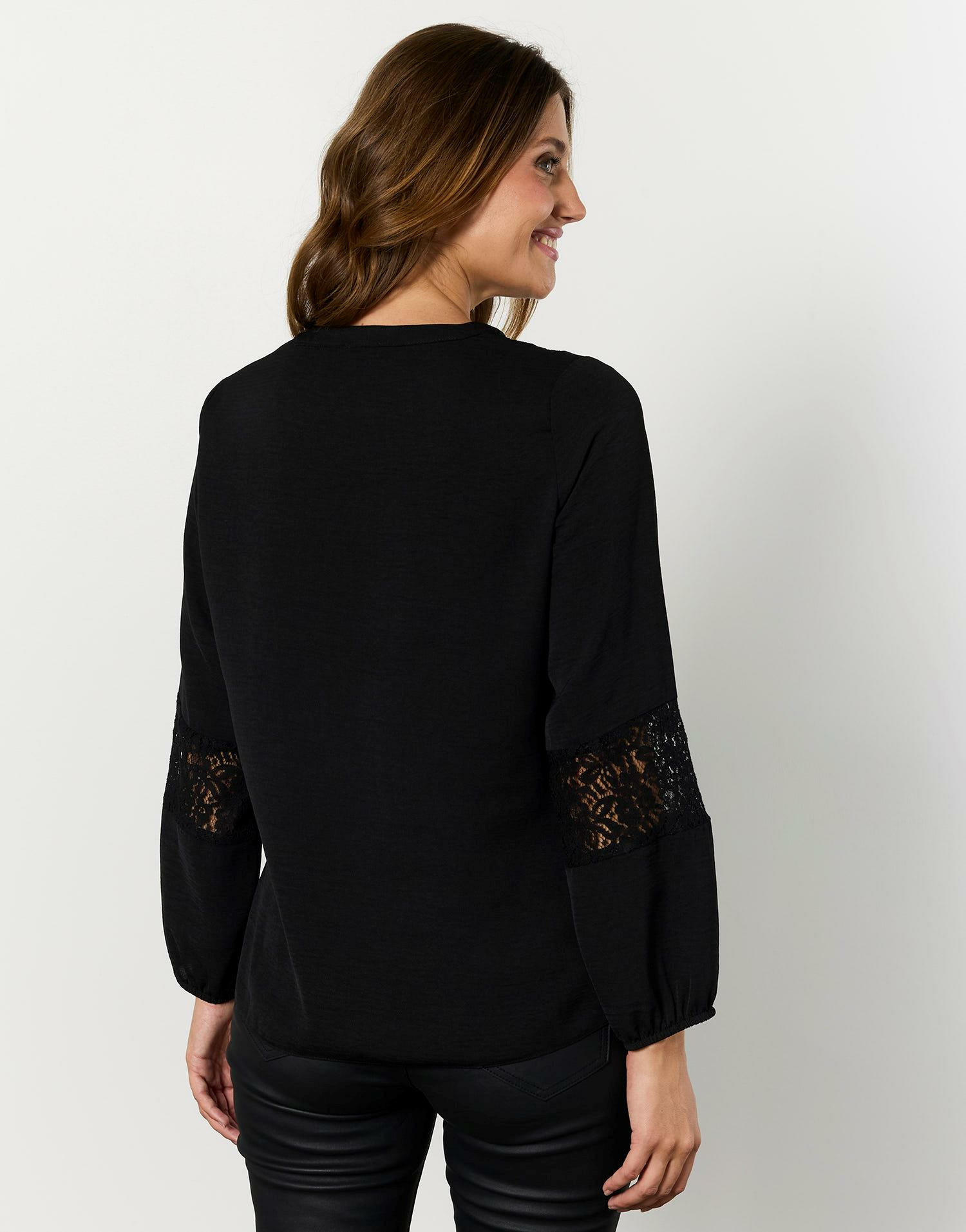 Élégance et simplicité se rencontrent dans cette blouse noire aux manches longues, parfaite pour sublimer toutes vos tenues. Une pièce essentielle signée RIU Paris qui incarne le chic intemporel.
