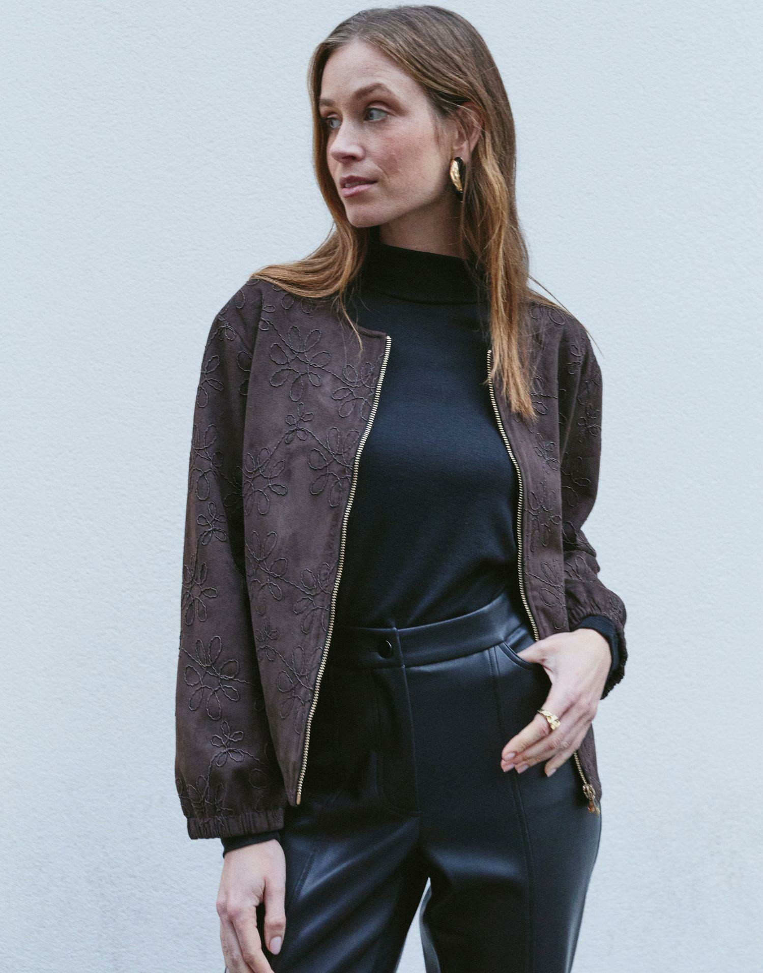 Confectionné dans un jacquard riche en textures, ce blouson se distingue par son encolure arrondie et ses manches resserrées qui soulignent une silhouette contemporaine. Les broderies délicates apportent une finition raffinée, mêlant subtilité et caractère pour une allure chic sans effort. Facile à associer, il s’adapte aussi bien à un jean qu’à une jupe pour un style polyvalent.