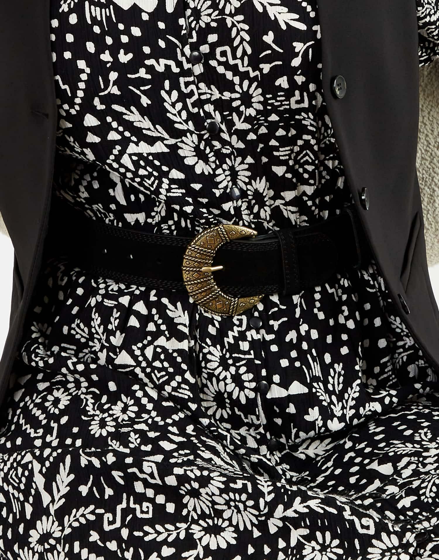 Conçue en cuir de vachette au toucher suédine, cette ceinture moyenne de 3 à 5 cm de largeur offre un équilibre parfait entre robustesse et douceur. Sa boucle originale apporte une note distinctive, faisant de cet accessoire un incontournable de votre garde-robe. Disponible en trois couleurs, elle s’adapte à toutes vos envies et rehausse subtilement vos looks.