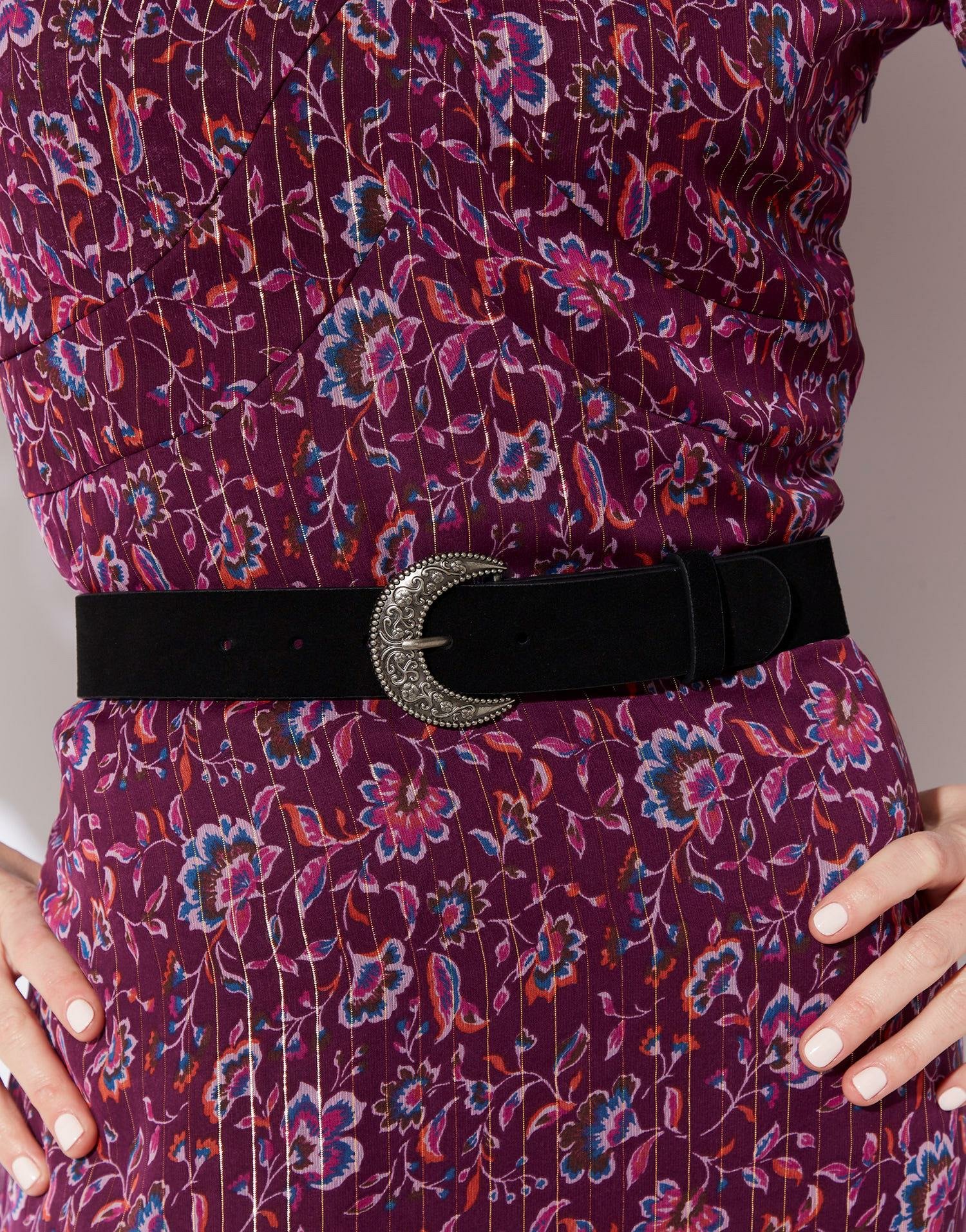 Conçue pour s’adapter aussi bien à un jean qu’à une robe fluide, cette ceinture moyenne de 3 à 5 cm de largeur joue la carte de la simplicité sophistiquée. La finition daim offre une texture douce et élégante, tandis que ses détails soignés font toute la différence. Elle se glisse facilement dans vos tenues pour structurer votre silhouette avec finesse.