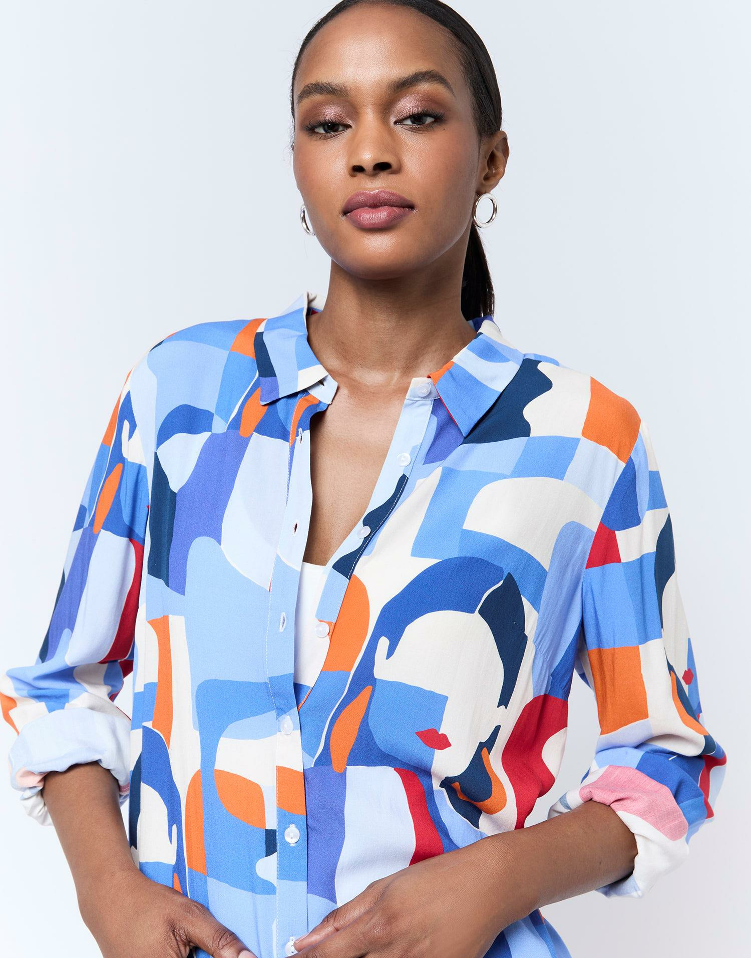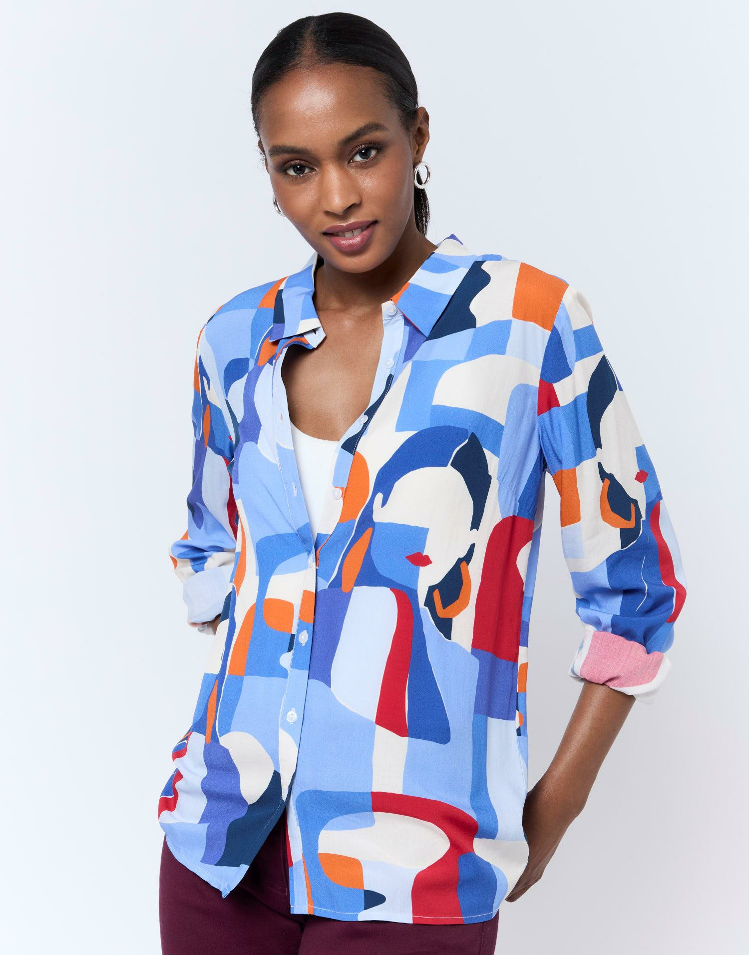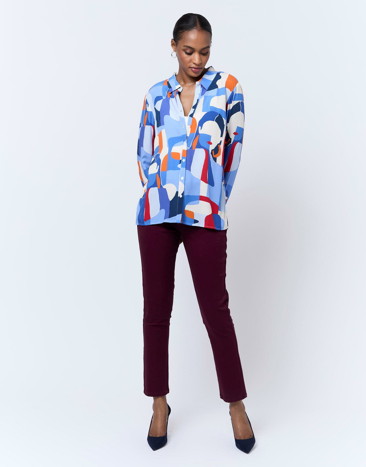 Conçu pour celles qui recherchent à la fois originalité et sophistication, ce chemisier facilite la création de tenues élégantes sans effort. Sa matière légère garantit une sensation agréable toute la journée, tandis que son imprimé artistique ajoute une signature visuelle qui ne passe pas inaperçue.